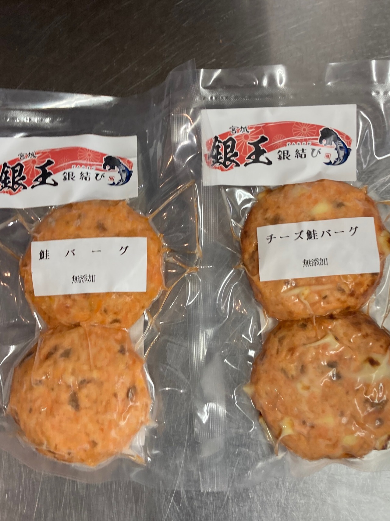 原材料名:さけ(宮城県産)、玉ねぎ、つなぎ(パン粉(小麦))、たまご、チーズ